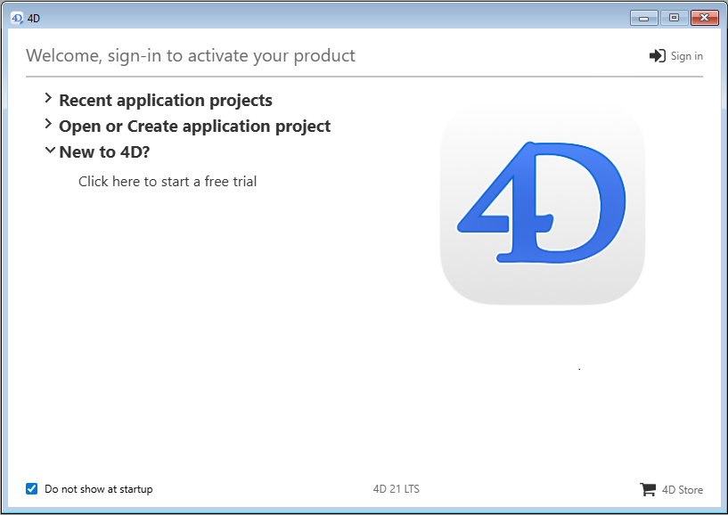 Once you have completed the installation, you can start 4D and sign in. To do so, double-click on the 4D product icon.