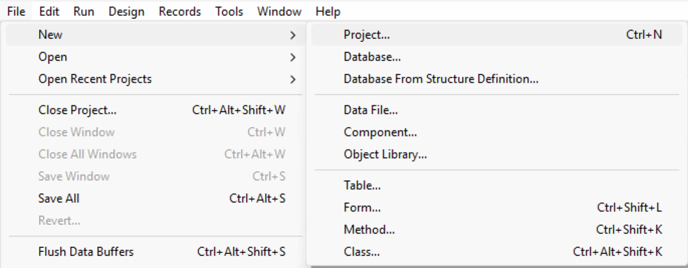 - (solo 4D) Seleccione Proyecto... desde el Nuevo botón de la barra de herramientas: