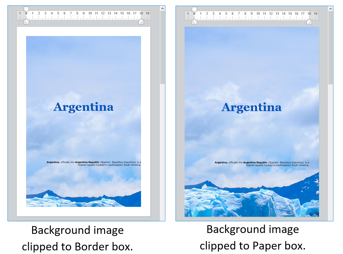 Cuando se muestra en modo Página o Borrador (o en el contexto de la impresión de un documento), los párrafos de 4D Write Pro pueden romperse