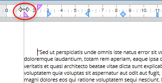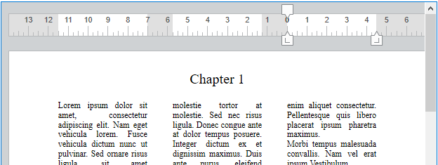 Cuando se definen dos o más columnas para el documento o la sección, la regla horizontal muestra un área específica para cada columna: