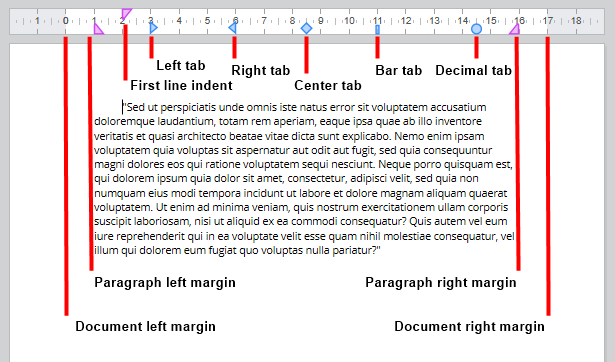 - Tabulaciones mostradas a lo largo del borde inferior de la regla