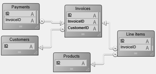 こ のカスケードの関係においては、[Invoices] のトリガーはレベル1で、 [Customers]、 [Line Items]、 と [Payments] のトリガーはレベル2で、そして [Products] のトリガーはレベル3で実行されていると言えます。